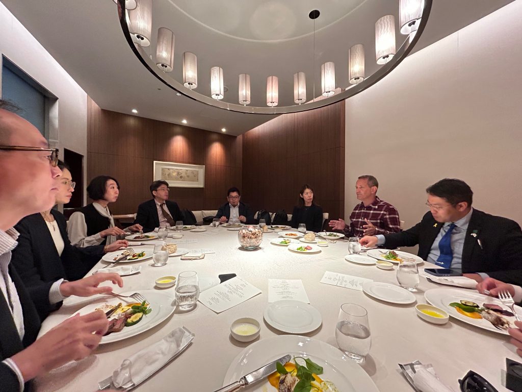 Later, Prof. Shavit and Dr. Yonker met in Tokyo with seven leading Japanese journalists and scholars to discuss the current situation in the Middle East. The roundtable was organized in coordination with the Israeli Embassy and provided a forum for important dialogue and exchange on Israeli society and politics, the war in Gaza, and Japan-Israel relations. In attendance were: Prof. Ezaki Chie, an associate professor at the National Defense Academy specializing in the Middle East; Ms. Kanaya Misa, a senior analyst at Mitsui & Co. Global Strategic Studies Institute specializing in the Middle East; Dr. Nagao Satoru, a non-resident fellow at Stanford University’s Hudson Institute specializing in strategic studies and international relations; Dr. Nomura Akifumi, an associate professor at Takushoku University specializing in Shari‘a law; Ms. Okada Mizuki, a political staff writer at Sankei Shimbun covering Japanese security and foreign policies; Mr. Sugita Hiroki, a professor at Meiji University and journalist with Kyodo News, specializing in international politics; and Mr. Kawakita Shogo, a senior writer and editorial board member at Kyodo News.