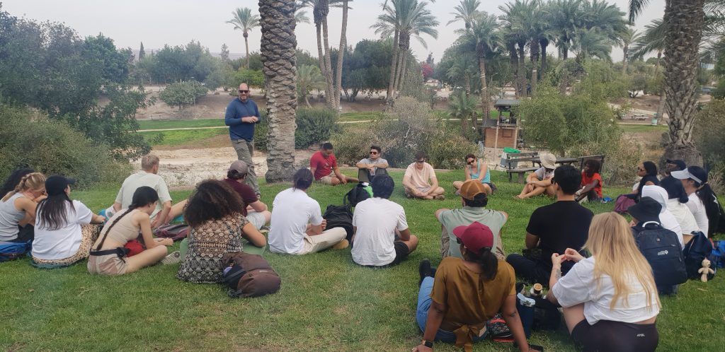 Following Beit She’an, the Fellows traveled to the nearby Gan HaShlosha (Sakhne) National Park, where Dr. Carl Yonker, the Institute’s Academic Director, led a thought-provoking discussion on how the “Jerusalem” and “Tel Aviv” schools of archaeology interpret discoveries in relation to biblical narratives, sparking a wider conversation on how faith, politics, identity and history intersect in the study of Israel’s past. After the discussion, the Fellows swam and relaxed in the afternoon sun, enjoying the warm natural spring pools in one of the most beautiful national parks in the world.